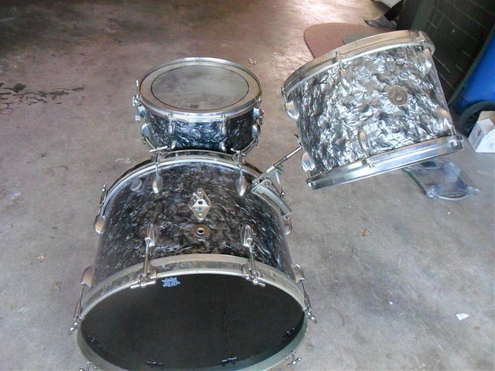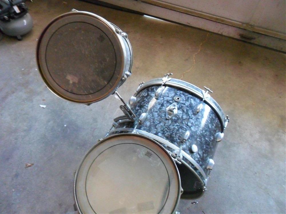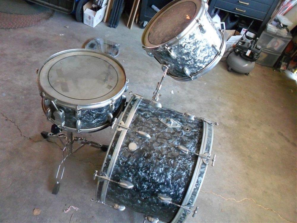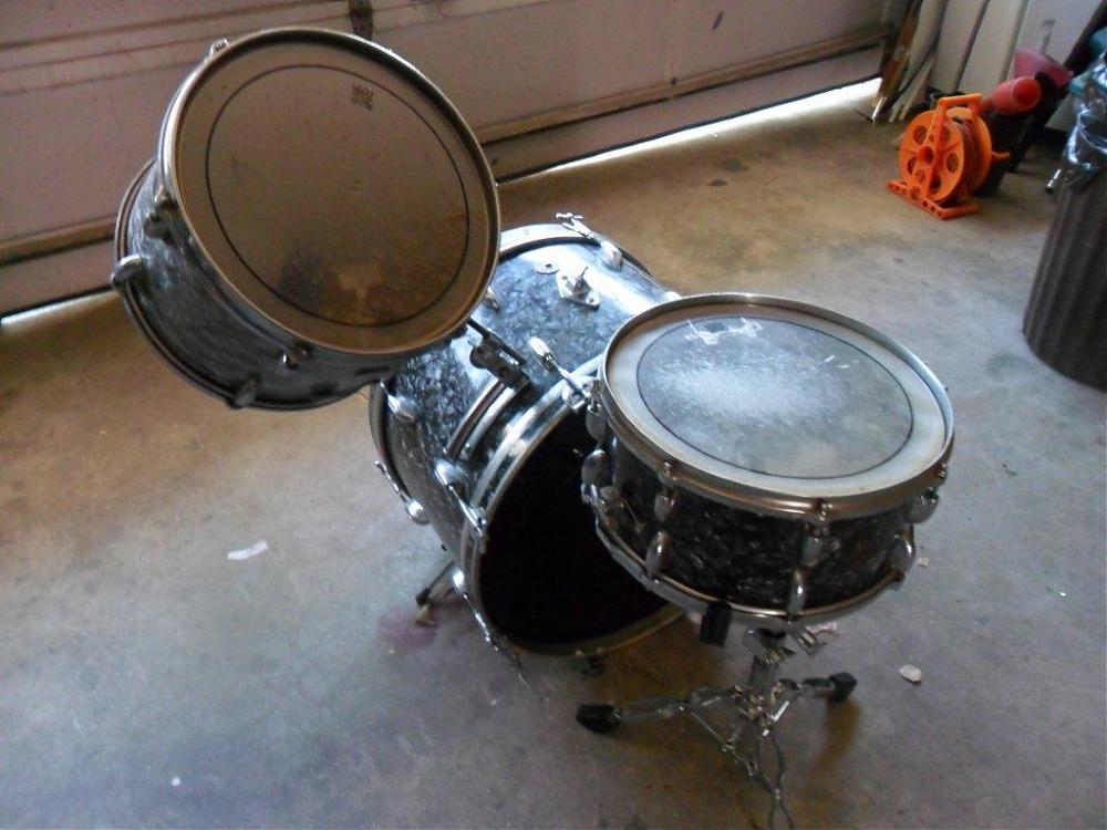 I'm not sure what to ask on these, The floor tom is a Tempro so it doesn't even go with it and it's in rough shape. I will include it if someone wants it. It's a 22" bass drum that is missing the cymbal arm and the tom mount has been modified. The 12" riding tom has the wrap lifting but it is not cracked. The 14" snare is all original except for the heads on all of the drums are not original.