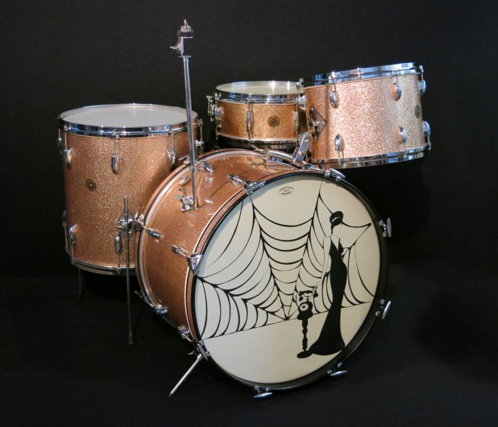 Beautiful 1960s Gretsch Round Badge drum kit in the original Champagne Sparkle.