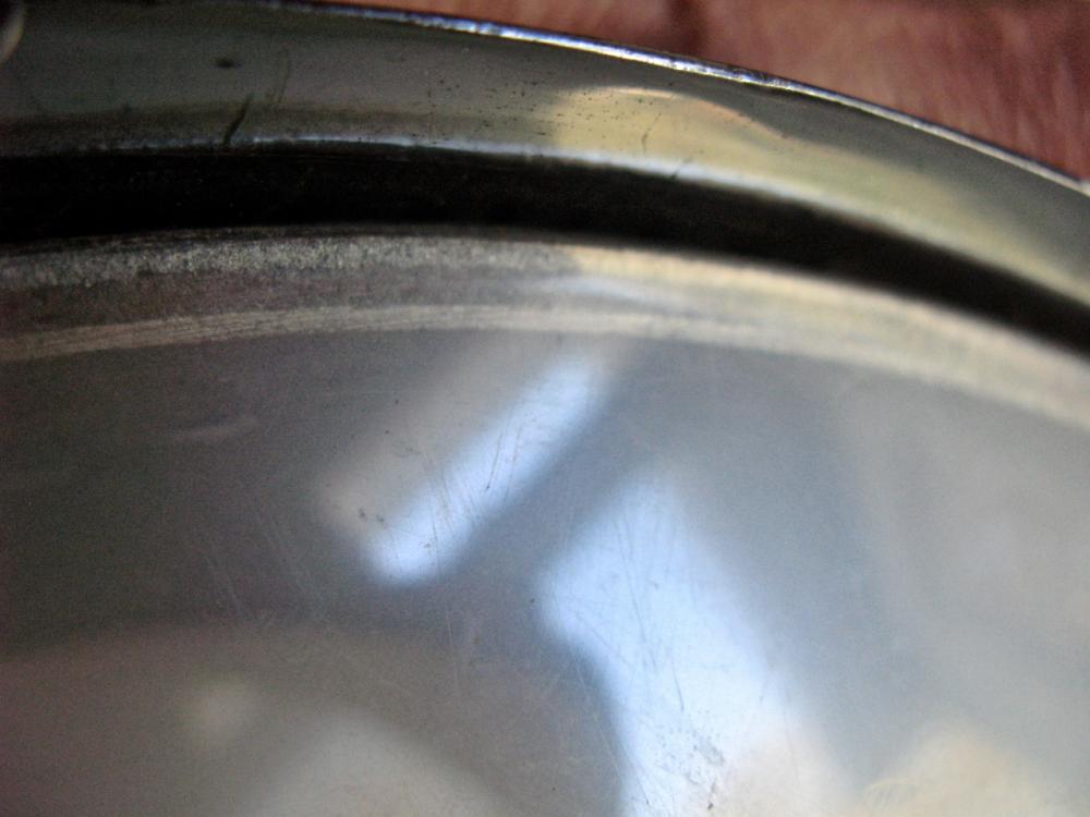 The shell is in great shape with a few slight scuffs here and there. Chrome looks good with some light pitting . The COB hoops have little bends under the clips that I've seen on other Gretsch drums with these single flange hoops. The edges are factory and in good shape.