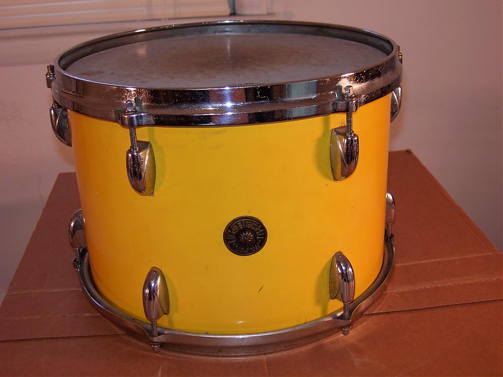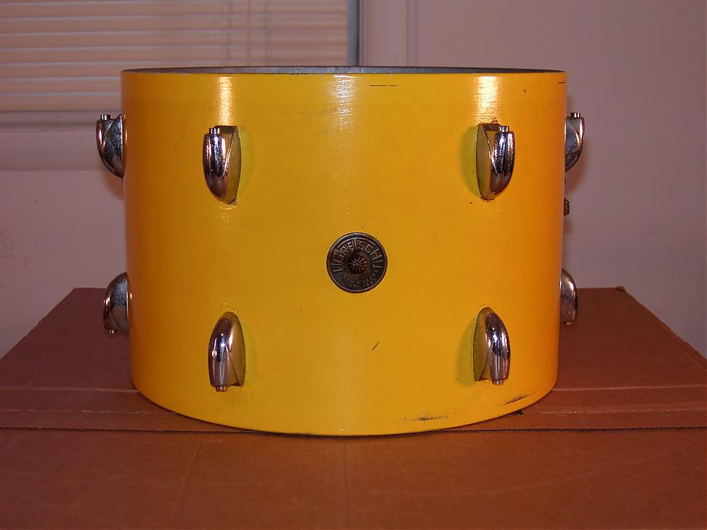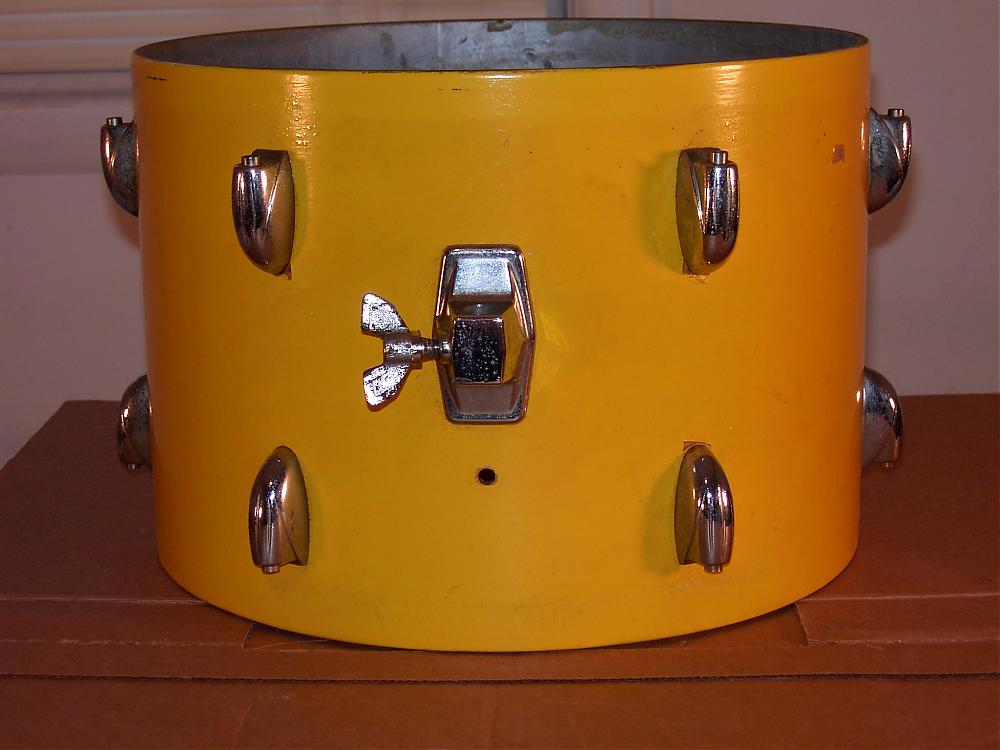 For Sale:: Gretsch 9x13" 60's round badge 6 ply shell, Silver interior,, this is a players grade tom, this is not original yellow nitron aka Tony Williams Yellow . this has been repainted. the badge was removed, as it left a crease in it. the top rim is the gretsch die cast rim.