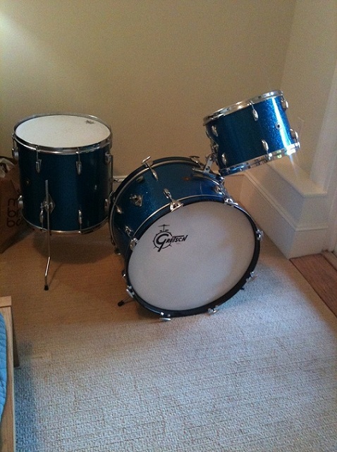 I'm new to this site, but have been into vintage drums, on and off, for around 20 years. I recently picked up what I think is a mid sixties Gretsch Name Band kit. It's configuration is 22 x 14, 16 x 16, 13 x 9 and a matching 14 x 5 1/2 snare. The finish is blue sparkle. The two toms and the snare have silver interiors with paper tags and 5-digit serial numbers within three thousand of each other. The bass drum also has a silver interior but no tag. All drums are 6 ply. The blue sparkle finish is in very good condition (not enough to suspect a re-wrap) ans all drums match. Is this a franken-kit or could this have been sold this way originally? Thanks in advance for any responses.