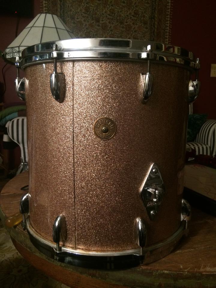 ok so i have this champagne sparkle gretsch round badge 14"x14" floor tom available.
