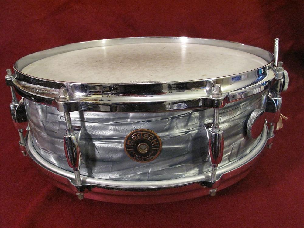 Gretsch 1960s Round Badge 4 x 14 Snare Drum in Midnight Blue Pearl Excellent drum in excellent condition. The wrap has very minimal fade and the bottom edge is a rough from heads being taken on and off. However the brand new resonant head that is currently on the drum, fits perfectly without much effort needed. As the photos show, the drum is in great original condition down to the tension rods and snares. The seam is slightly lifting and the micro strainer doesn't function properly.