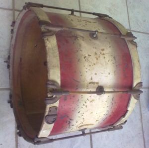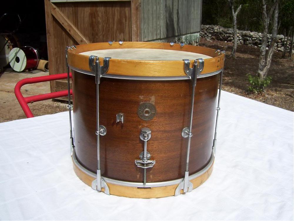 My old marching snare is a 1953-54 Slingerland Standard King that I snagged from eBay kinda like Mikey did with this Gretsch. (I couldn't pass it up at $49!) It's currently in parts, slowly being restored, so I've attached a "before" pic.