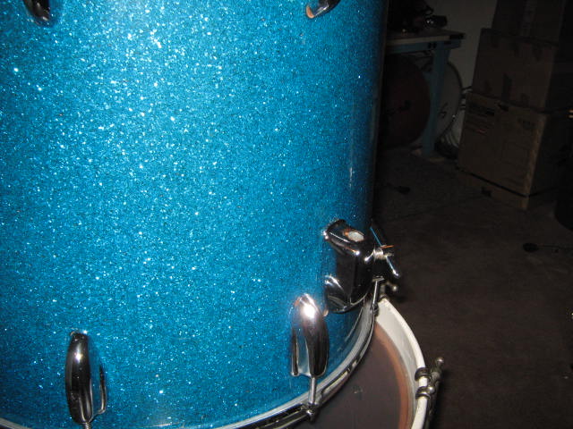 It's that pretty Slingerland aqua-ish blue glass glitter, so for the time being, at least, I'm willing to live with the "warts and blemishes".......LOL
