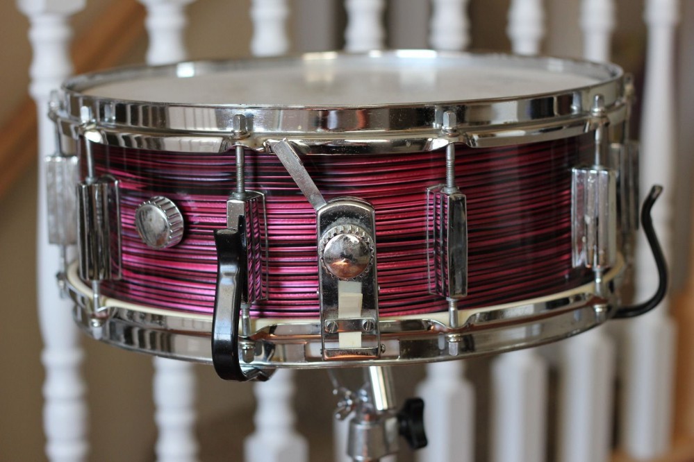 60s Gretsch 5x14 maple WMP / 68 Ludwig 5x14 Supraphonic / 93 Pearl 3x14 Free Floating brass piccolo / 60s Star (Lyra) 5x14 luan blue sparkle pearl / 87 Pearl 6.5x14 steel