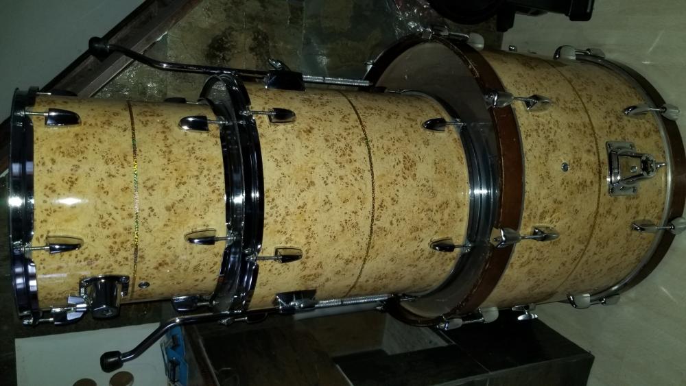 22x16bd, 16x16ft, 13x11rt. 9 ply "mahogany" shells. Custom birdsey wrap. Said to be from 80's/90's. Asking is $260