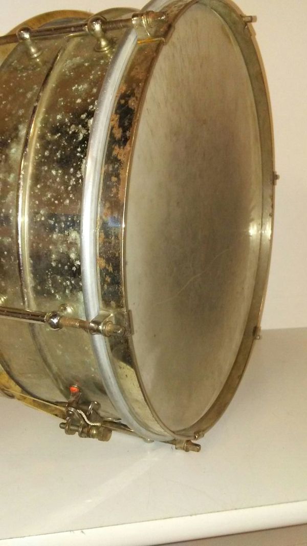 I wouldn't think that was aluminum, shell will probably clean up nicely. What is the weight of the drum? Brass is heavier. Unless someone put older styled clips on a newer aluminum shell to make it look older. I am not familiar with the throw either. Rims usually pit up on the older snares. Someone on here will chime in and help they always do. This is the learn something new everyday site that I visit daily for that reason if not any other.