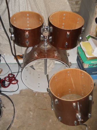 The set is a 70's set made by Pearl it has Pearl copy lugs on it..Could be a number of names on the set C.B. 700,Maxtone,ete i would have paid no more than 50.00 for the drums with all the missing parts its not a money maker set say 100.00 for the parts/50.00 for the set at the end you would have a 100.00 setrestored...I like the Ludwig tom mount on the set....Mikey