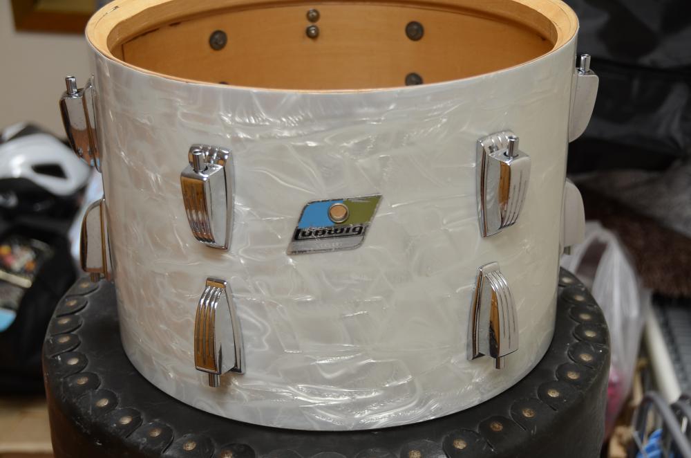 I picked up this lovely Ludwig kit in WMP the other day and has almost finished restoring it. I'm a bit unsure about the year of manufacture so I could need some help identifying it: