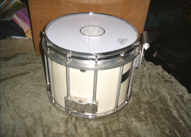 Hello all. I just acquired a Pearl Marching snare. The tag has been removed on it so I'm not sure which model it is. Is it a FFX? Champion? It's in need of the throwoff assembly on at least one side. I would love to have the correct era tag as well. Any idea's where to get the parts needed to make this snare function again? What are the parts missing? I know it's a throwoff or adjuster that's needed, and of course the strainer, but does anyone know what I should look for? Any help would be greatly appreciated. I have always wanted a decent marching snare and I finally got one, I think, just in need of some info to point me in the right direction to get it playable again. Oh, any way to remove yellowing? Thanks All!!
