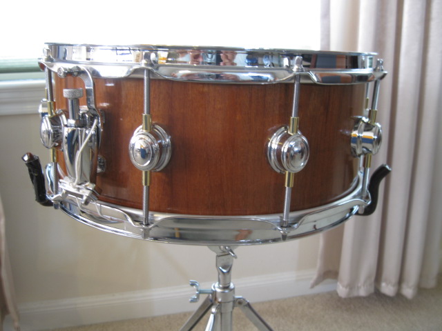 I've made a couple of stave snares. I think that kit is a stave build. It's hard to tell in the pics, but you can kinda see the line where the staves are glued together. Take a look at the one I made. Look closely and you can see where the staves are glued. I would like to know how thick the shell is. People tend to make stave shells too thick which gives a good crack but the shell doesn't resonate. I make mine about 3/8" and get a good sound. The way these are though with the single tension rods. They would be limited in tuning range. I guess they just didn't want to drill into that beautiful wood.