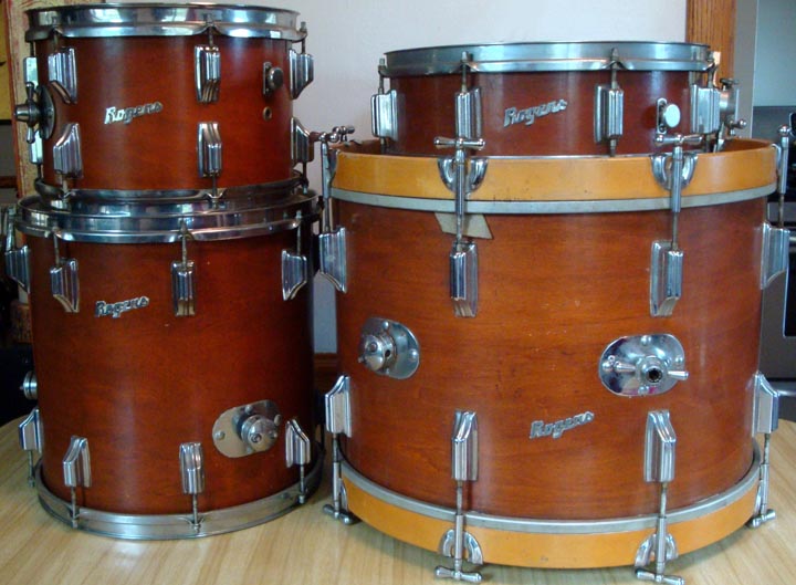 I spoke w/ our Rogers guru this morning (The Ploughman) and he situates this set on late 63" early 64". Rare custom order. He have seen a couple of snares on this finish but never a complete set.