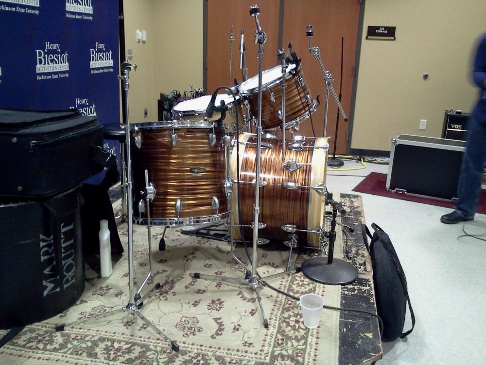 Out of state for work - but ever so grateful as I have been able to start gigging again after about a two year absence. I brought my Root Beer Whitehall kit out with me - as it is perfectly fitting to be playing the Country/rock that these local bands are playing.
