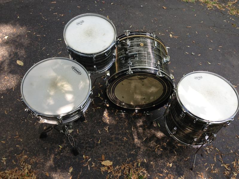 the drums are in original condition and feature no extra holes or mods, white painted interiors, white felt baseball bat mufflers and consecutive serial #'s! serials are in the 3xxx--- and place the kit at 1966.