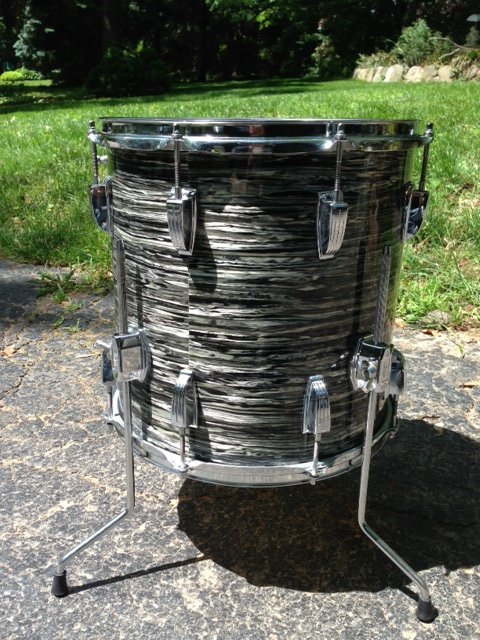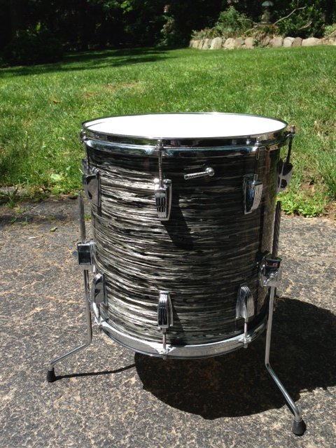 1960's Ludwig 14"x14" floor tom in original black oyster pearl finish.