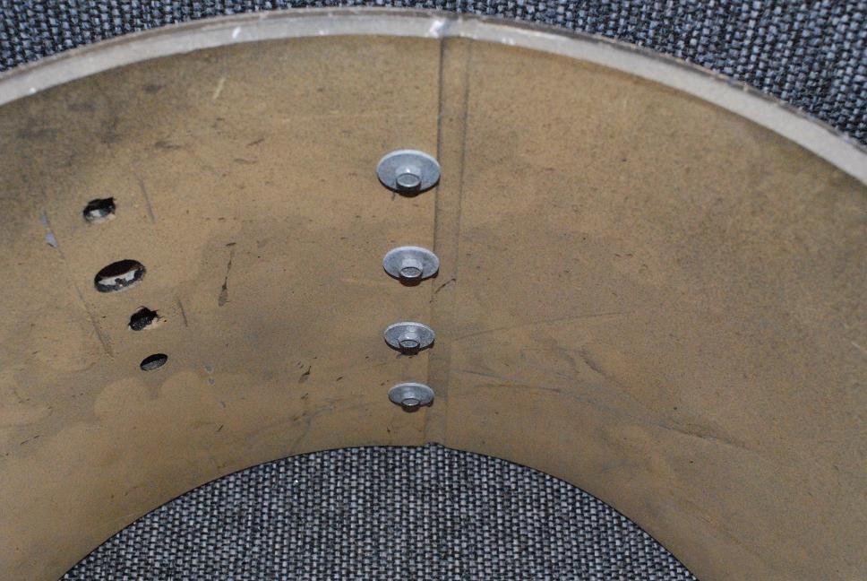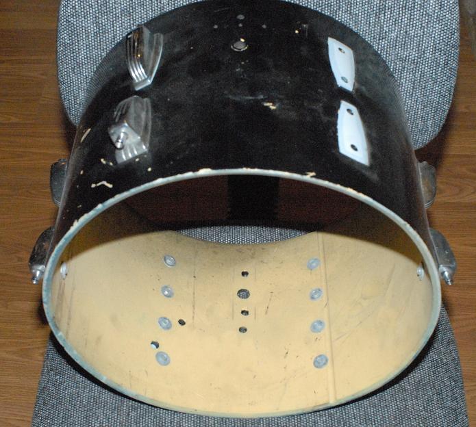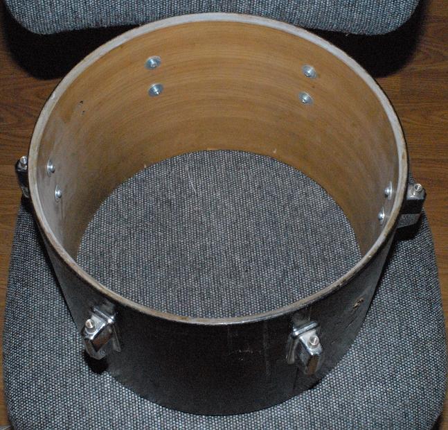 The third is a tom with Ludwig lugs. The drum appears to made of something other than wood, possibly fiberglass. In the photo I have removed two lugs and you can see it is white underneath. The white is almost like plastic.