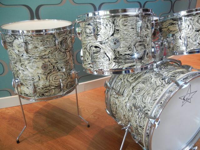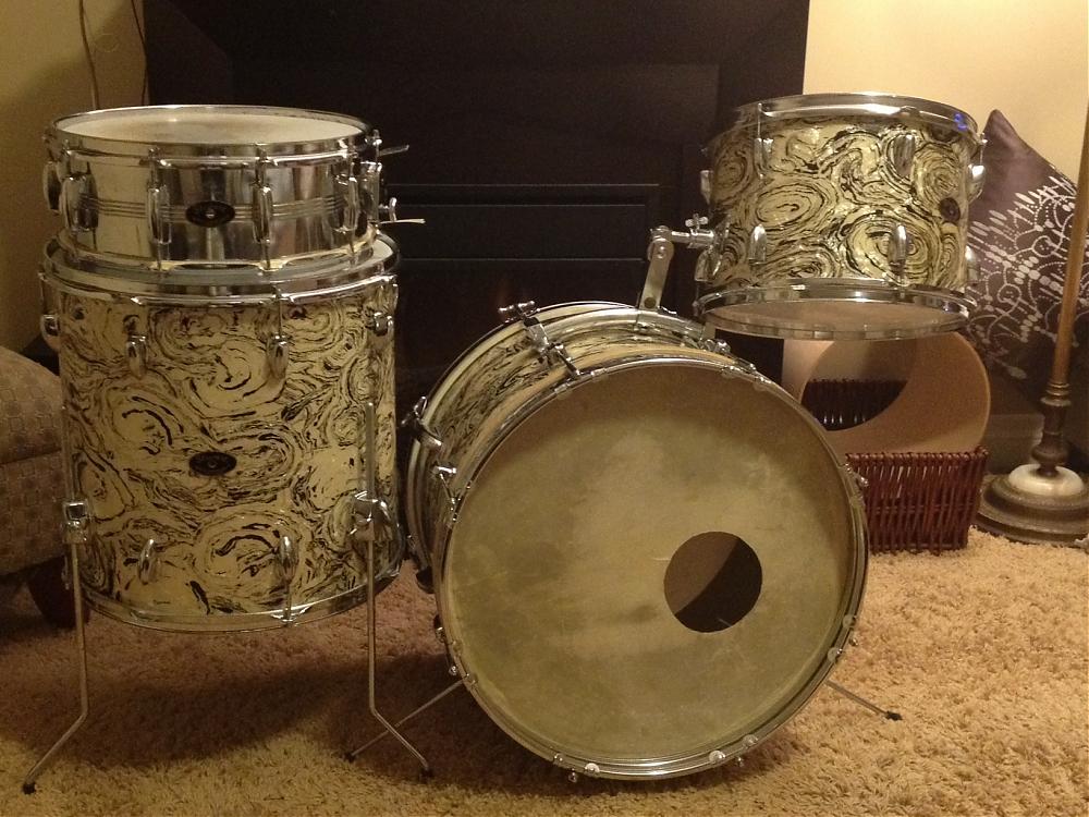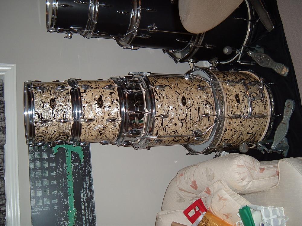 Mine is a 4 piece, 13, 16, 20, w/ a steel 10 lug snare. Stewart. SW Ontario.