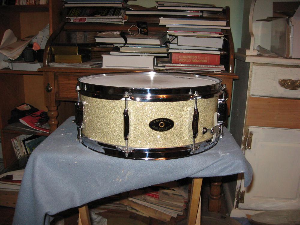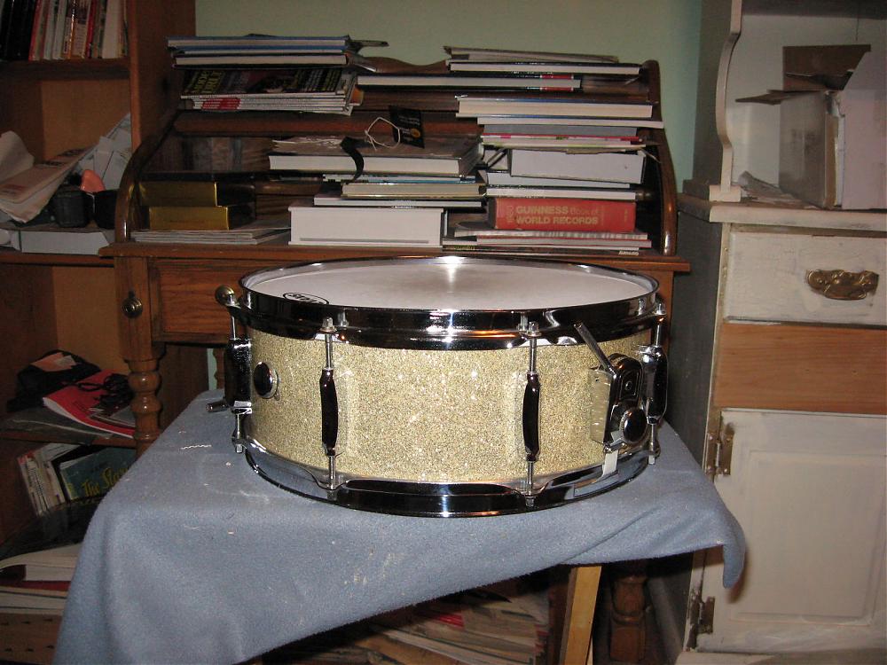 Nice looking snare! I just got a no-badge red sparkle stencil on Ebay that I need to get cleaned up. It will sit on the shelf next to another red sparkle Lido and a blue sparkle Whitehall. My sparkle shelf!