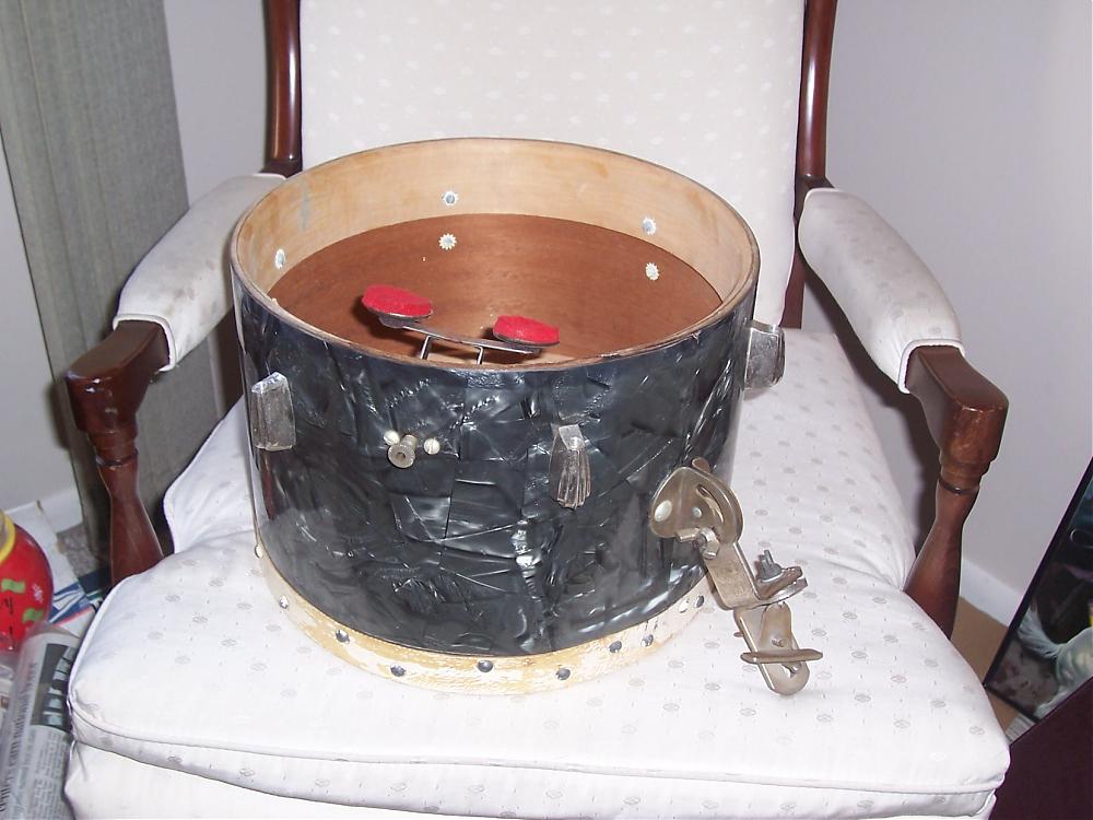 The kit came with a Radio King bass drum, rack tom with tacked bottom, Gene Krupa Super Radio King snare drum (16 lugs) , floor tom with basket and original hi-hat stand with 13 inch "hats". All the drums came with calfskin heads, including some original Radio Kings.