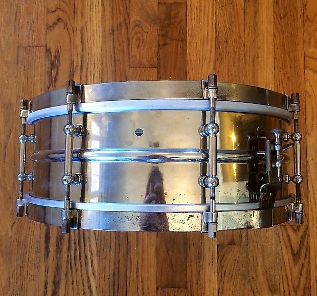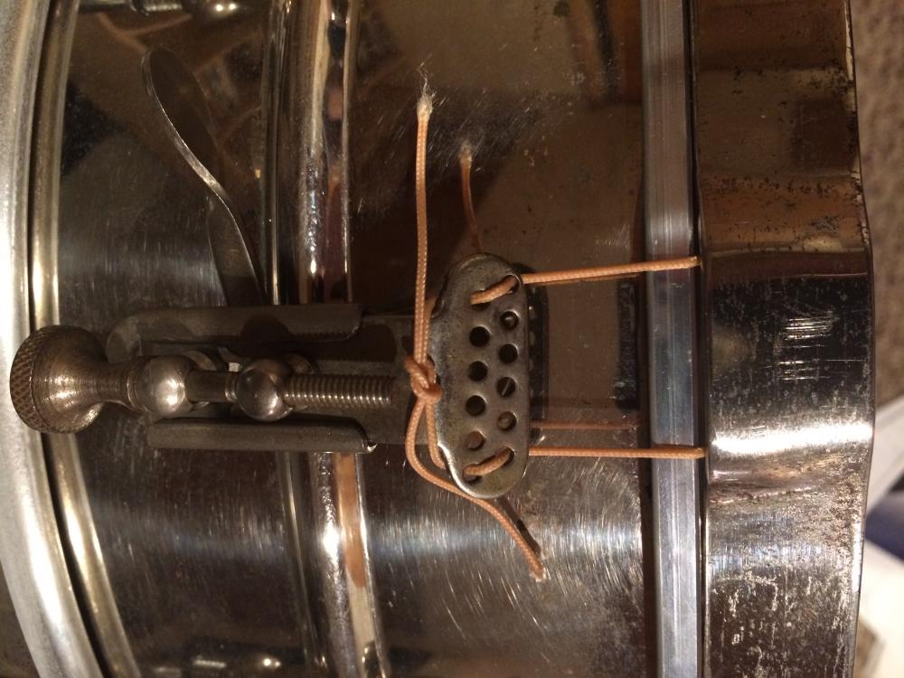 Picked up what was supposed to be a 20's Ludwig NOB snare 5x14 with 8 lugs. Seller said it was a Leedy and Ludwig. I thought it was a Ludwig & Ludwig. It doesn't have an engraving on the hoops or the shell. There is a seam on the inside of the shell. The throw is not the P-338 I was expecting to see on the drum either. Tension rods are slotted at the tops and hex shaped. Magnet stocks to the hoops, but not the shell, so it is nickel over brass.