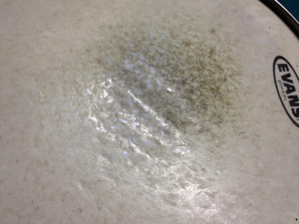 Pardon my rant, but I need to vent...last week I went on vacation just the wife and I and left our 22 year old son watch the house, he dabbles a little with the drums, I hear him on my roland kit he is not bad given the fact he had no lessons or musical background. He asked me to set up an acoustic set for him to play with his I pod while we were gone. The next part is my fault, part if the cymbal set up I put on the stands was my 20" crash ride my dad handed down to me from the 50's. so today I was downstairs and saw that cymbal was cracked, I was FRURIOUS, when I approached him about it he denied it, so he lied to me, I guess its possible he didn't even know it, but their is a difference between playing the drums and destroying them. I guess kids just like to make noise as loud as they can, to prove my case to the wife, (who tells me "well you bang on the drums right? that's what he did)obviously the wife knows nothing and should stay out of this argument. anyway, I attached a pic of the snare head, note the middle section is sagging, but the tension on the head is tight, which means he hit so hard that the structure of the head itself was impaired. I'm just sick about this, and he shows no remorse what so ever for what he did.