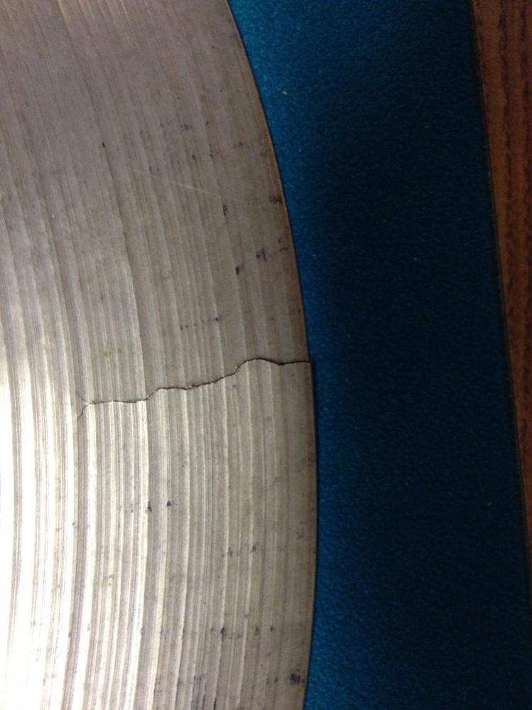 There was a trust that you left with your son when you and your wife went on vacation and it will take awhile for that trust to come back.Even tho` he may show no remorse in the fact,he does know what he did and will have to live with that always.I remember doing stupid things in the past and remember them to this day(lies incl.)I think that this was a permanent lesson for this young man that he will not soon forget.Very sorry about your vintage cymbal,heads are replaceable...but you`ve got a (Y crack) at the end of the main one.1/8 " drill bit at the top of each Y will slow it down but not stop it.