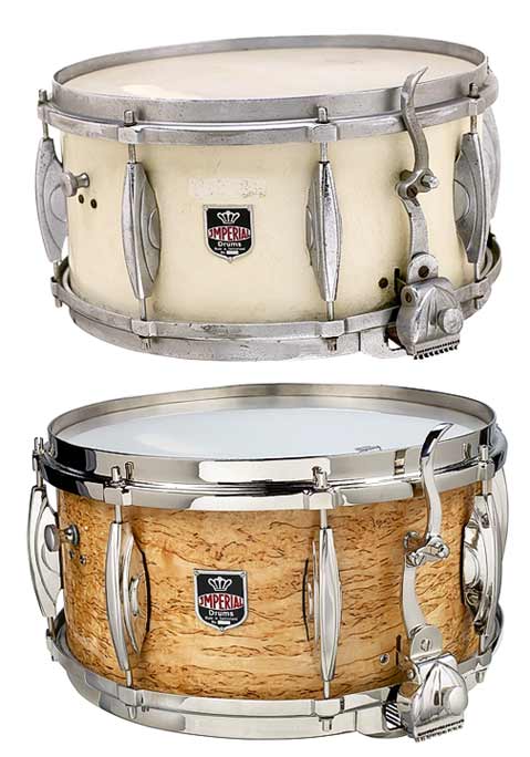 This is a drum I bought off Ebay & restored - re nickel plated hardware, Kerelean birch Burl Veneered. I know many vintage gurus don't like the change in finish, but I'm thrilled with it. This drum's badge has a serial number space that's blank! Don't know what that means!