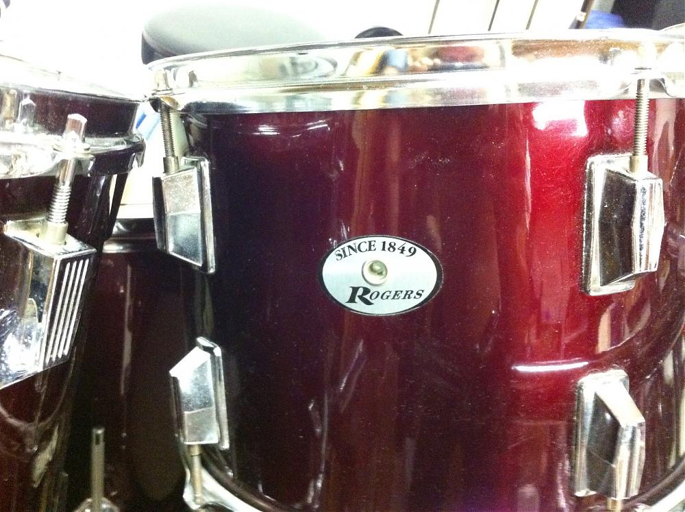 Recently purchased a 8 piece Rogers kit, but by appearances of the hardware can tell from different series. Skins all generally match but only have 2 badges, without serial number stamped. I've tried to search to identify the badge and possible year of manufacture, but I can't seem to match. Any ideas or info. Also like I said the lug hardware varies on the toms, and again looking for anything that might help me ID this nice set. Been drumming since 69 and have owned Slingerland, Gretsch and Rogers but this baffles me.