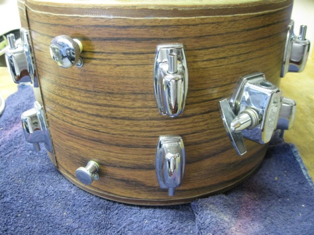 Hey Guys. I need some ID help with this tom I bought a couple months ago and I'm just now getting around to working on it. I think it may be a Ludwig Standard, but it had Rocker Heads and the guy I bought it from said it was a Rocker. Can you help me out with info on it and what it could be? It has no badge, but it does have a label inside. Has the granitone interior and looks like the mount was moved. I think it was also rewrapped. Thanks, James