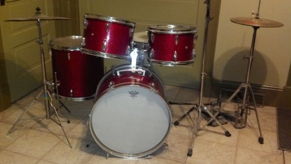 I'm not an expert on MIJ drums and such so I'm calling on you for identification/info. I only have one (and somewhat crappy) picture of the set in question but it looks to me like it might be a MIJ set of some sore (Star?). Red sparkle wrap, 6 lug bass with metal hoops, no badges. I guess all signs point to MIJ but I need the experts to confirm. And of course I'm going to ask for a ball-park value.