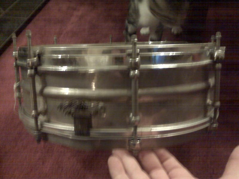 Today there was a snare drum! I couldn't let it stay behind. It does look old but I don't know.