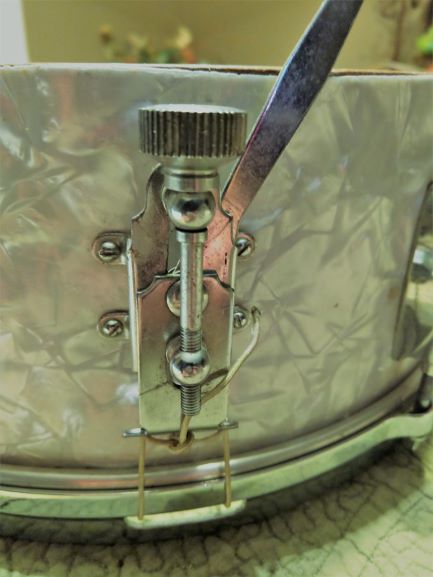 60s Gretsch 5x14 maple WMP / 68 Ludwig 5x14 Supraphonic / 93 Pearl 3x14 Free Floating brass piccolo / 60s Star (Lyra) 5x14 luan blue sparkle pearl / 87 Pearl 6.5x14 steel