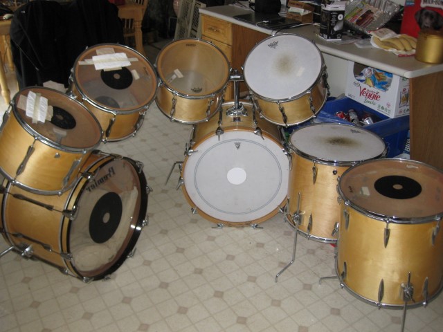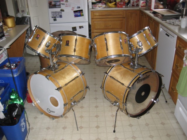 Hi All...just acquired a Premier Resonator shell pack from a great guy in Manitoba., and in the same finish as my 70's Elite kit. I've been looking for a long time for a match for my kit that I bought new in mid-70's. Here they are, making friends....