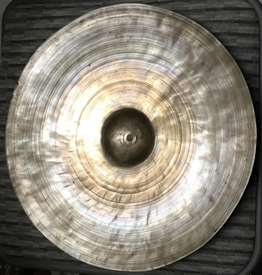 The I"M WONDERING part - given that this thing is probably on the earlier side (10s-20s?) and drum sets hadn't yet changed to what we'd instantly recognize, the options for what this cymbal started out life as seem to be: Crash. Orchestra. Marching Band hand cymbals. Am I missing another option or two? What are the tonal differences between the known examples of the various types? What are the weight ranges within each type?