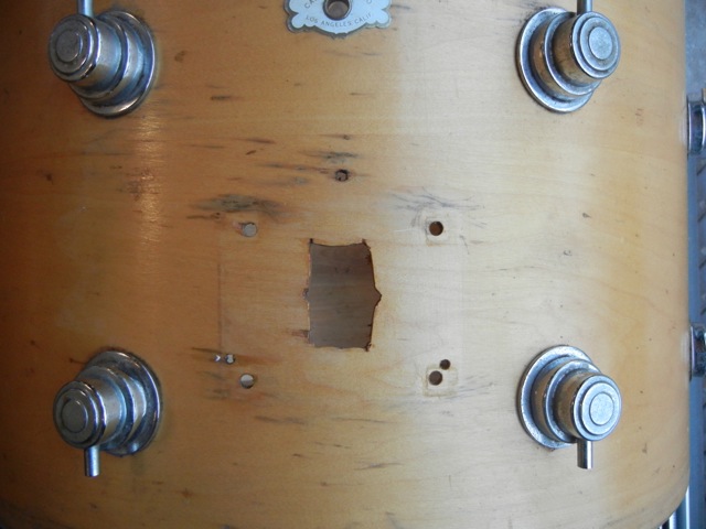 Unfortunately the bass drum and both toms were drilled for a 1970’s Premier mount.