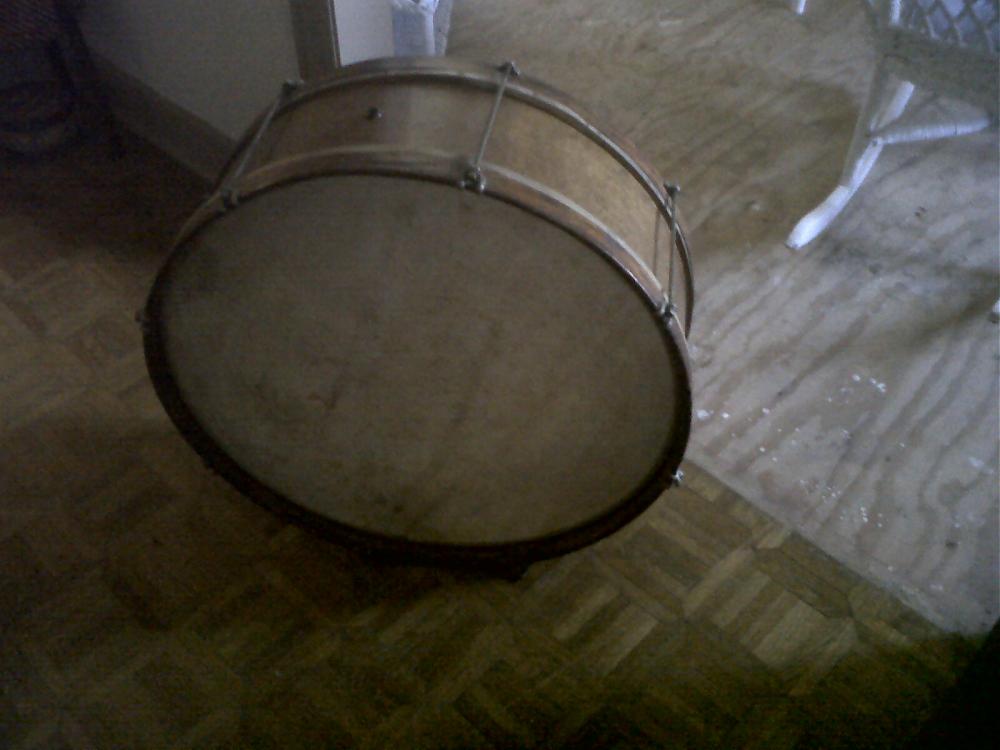 That is one cool drum. I could see it made up into a kit with other 'period' drums and brought 'back-to-life' as a playable drum like that. It sure would be a fun, maybe slow to get completed, project. I like it.........and if it was me involved - I'd buy it in a heartbeat for a decent = not low or not too high price.