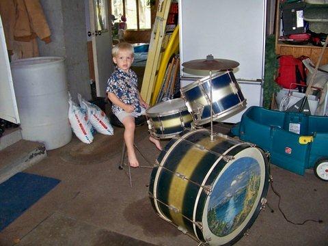 I have a one of a kind kit here... really. I have seen kits with the same wrap, but NONE that have a custom/original hand painting on the front bass drum head.