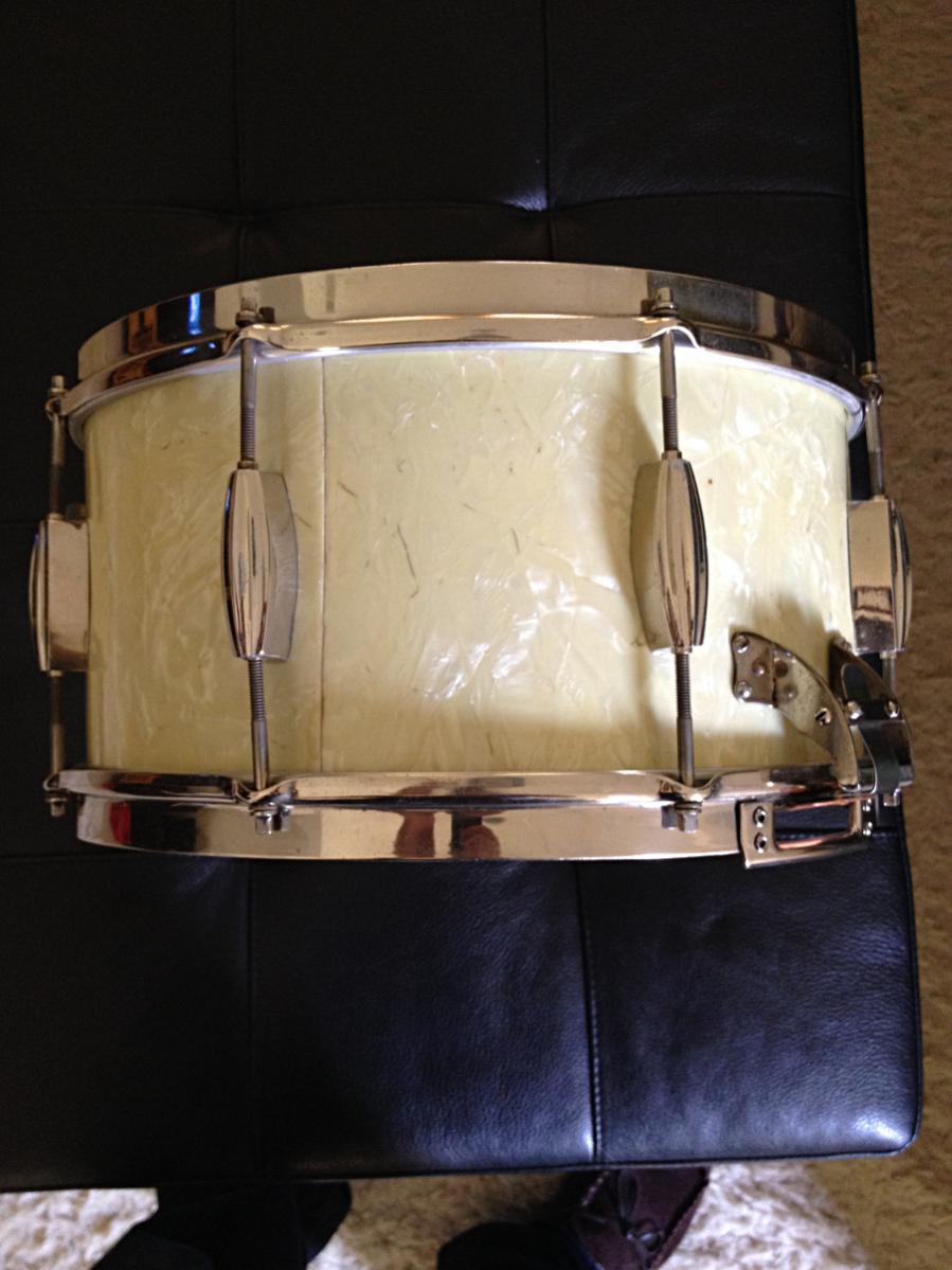 Slingerland-stamped COB hoops, muffler. For some reason, the throw was missing a few washers, I added new production bronze lock washers to complete it.