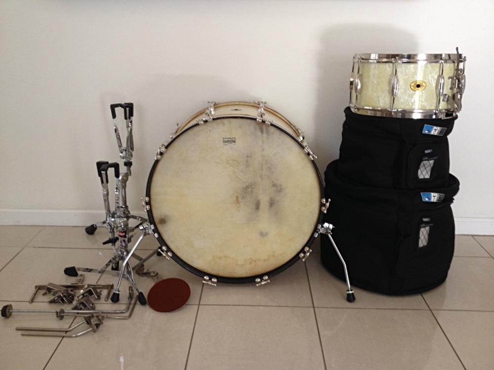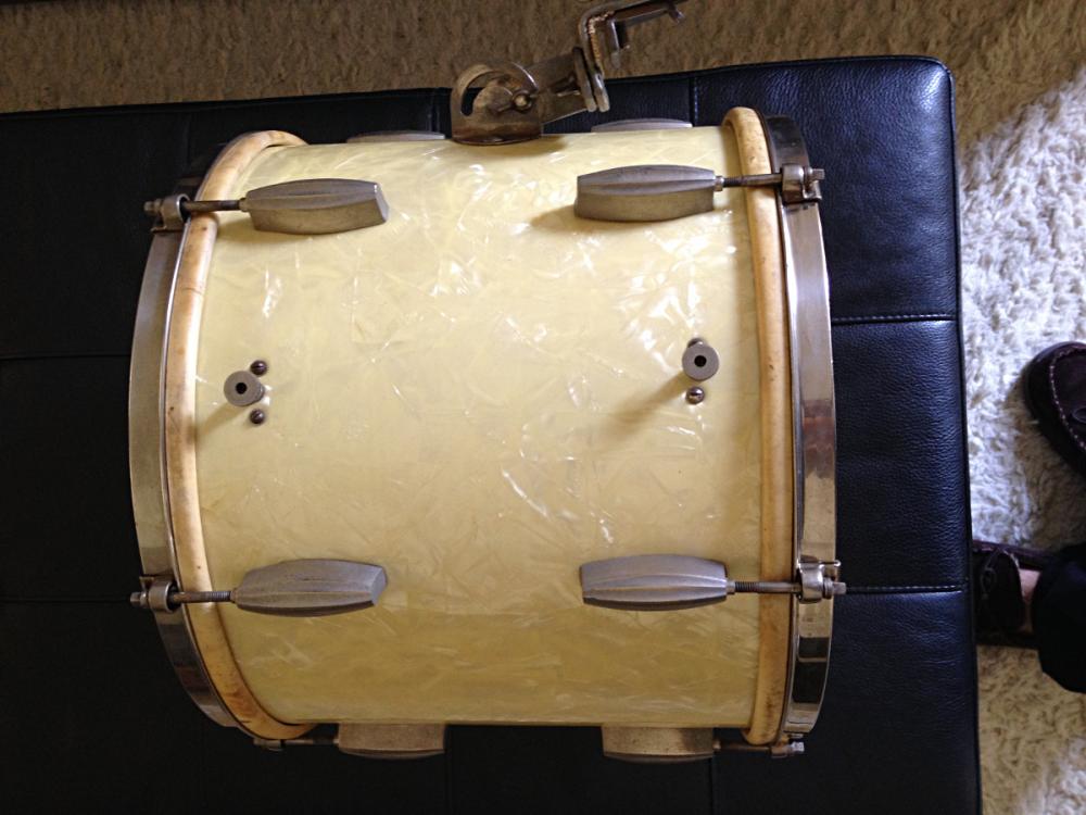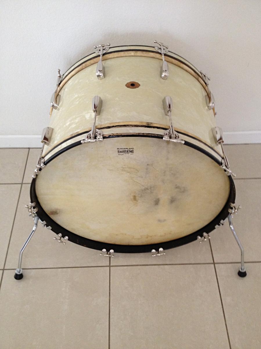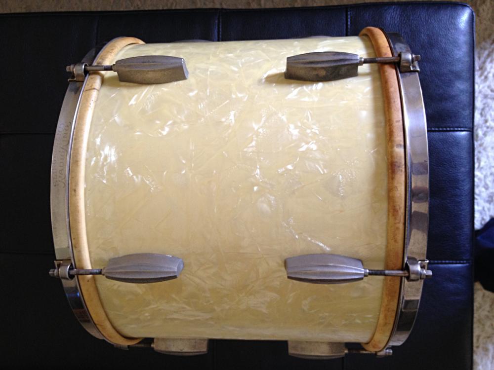 Orig wood hoops (tons of mojo – lacquer flaking, marks from pedal, spurs)