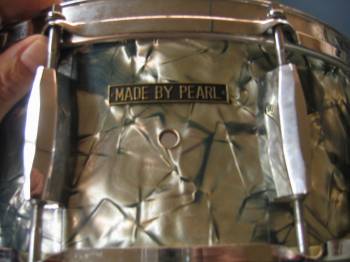 Interesting that the badge should have read "made with" Plastic Fiber? I didn't realize that the snare was not originally part of the this kit? Like you pointed out, the kit is all made with the plastic fiber but only the snare has the Pan badge. Is it from the 1968/69 era? My brother-in-law bought his brand new Pearl kit in 1968 and it was like mine. Yes, if you have some pix of any of these drums please pass them my way. I need a muffler knob rod and nut for my snare in case you know anyone who has one? Thanks jonnistix.