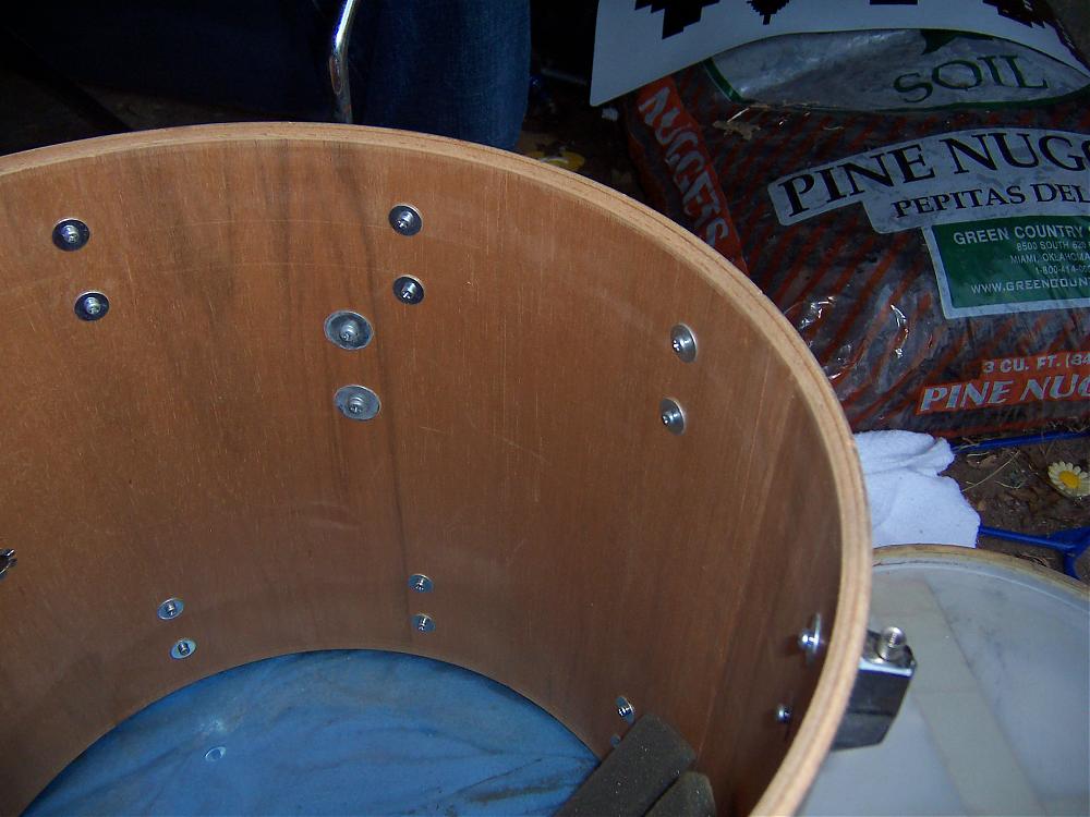 Now for my take on this kit: $150.00. Before anyone goes berserk, my idea is to take the kit and pull it down to bare wood. I have extensive luan refinishing experience, as I used to own a studio services company and did a lot of movie work. This exercise would more to teach my son many things, how they are built, what the parts are and what they do, and a little lesson in restoring wood. Fine sanding and staining high grade luan can produce a lovely finish, if one knows what they are doing, and these shells are a very nice, fine grade of "wood". Red Oak Minwax, with a thin coat of bar top poly would make these absolutely stunning drums. Would removing the cheap-o wrap affect the resonance of the shells or would exchanging it for the bar top poly add to it?