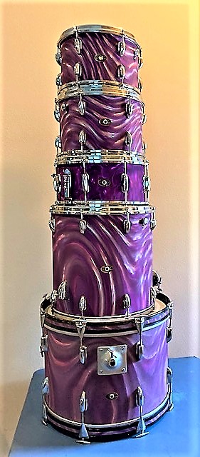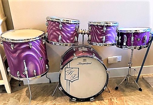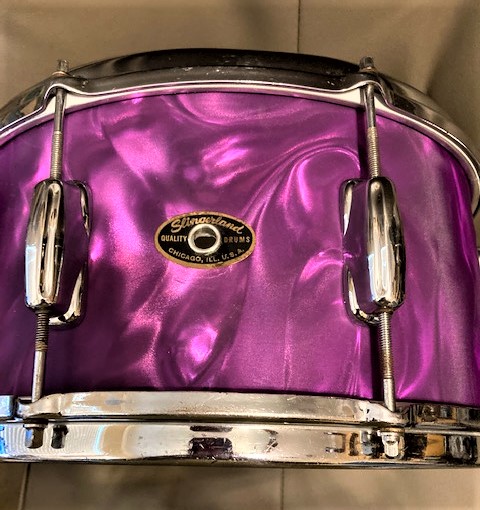 I received and installed the parts to complete the 7" x 14" 1961 snare for my 1968 Slingerland Lavender Satin Flame drum set. The drums measure 8 x 12, 9 x 13, 16 x 16, and 14 x 20.