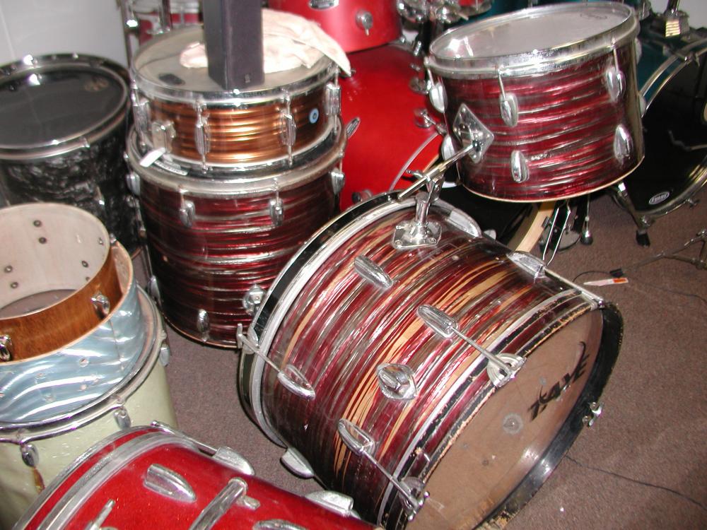 60s Gretsch 5x14 maple WMP / 68 Ludwig 5x14 Supraphonic / 93 Pearl 3x14 Free Floating brass piccolo / 60s Star (Lyra) 5x14 luan blue sparkle pearl / 87 Pearl 6.5x14 steel