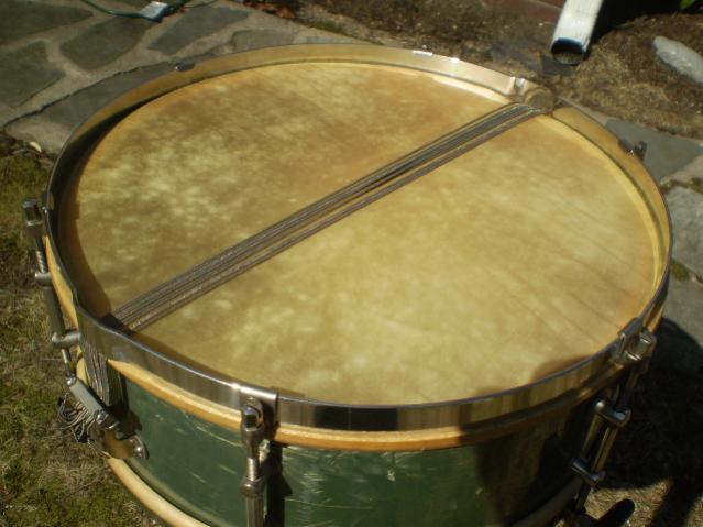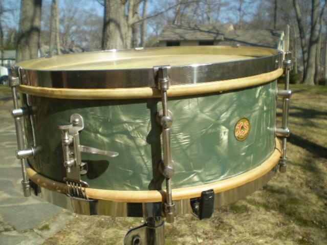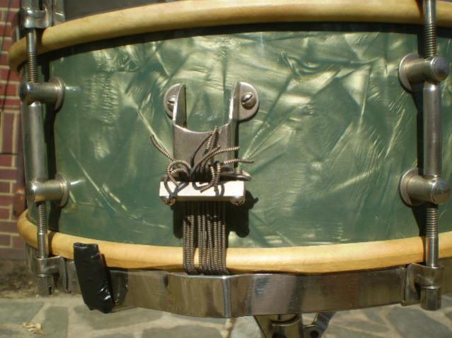 Many thanks to all-- drum has sold. Unfortunately, this Mid '30's Leedy & Strupe Snare Drum was damaged when shipped. Pearl covering is now cracked (not evident in these photos). But this cool L&S snare could still see life as a re-cover, or for it's hard to find parts. 6 lug-- all original-- including calf heads top and bottom. L&S slotted hex rods, tube lugs, single flange rims, clips, throw, butt end and wires. Nickel plated hardware in really strong condition. Shell very clean. BEST REASONABLE OFFER takes this L&S. Central Jersey shore.
