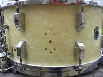 The leedy seems to have extra holes drilled but I can't imagine why. I've searched for pictures of this drum to try and find what these might have been drilled for and came up with nothing. If anybody could shed some light on this I'd appreciate it or if anybody can guide me to repairing these I'd love to hear suggestions.