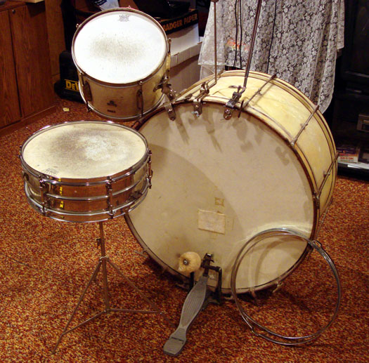 I have a leedy drum set with a Ludwig clamp on Tom Tom. The Leedy Set appears to be from the 1920's. It comes with the Bass drum pedal and Two clamp on cymbal stands and Spers. The Leedy snare drum is a 6 lug with snare butt plate. The rods are origional. The snare Rims are replacements but the origional rims come with it. Leedy Bass drums from this time are selling for $200.00 and up on Ebay. I will take $300.00 or best offer for all of it.