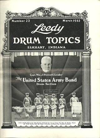 Leedy Drum Topics, March 1932 #23 Good condition for its age. All pages present and attached though cover split from back at top and bottom (but attached). Some yellowing, small tears and dog eared pages. $50 plus actual shipping from Italy. Send me a PM. Chet Falzerano