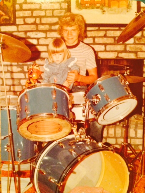 Here is a photo that I have not seen in many years, actually forgot about it. Well, my sister was over for a cookout and I played my Camco kit for her and my Dad along with some other relatives. I must of impressed her because today she text me this photo. This is me and her and my blue drums that my mom and I covered with contact paper. That was so long ago that I don't remember what brand of drums they were, that's because my dad gave those to me for Christmas one year and all the drums were different, red, blue, silver sparkle. It looks like one of the toms might have been a Rogers but the picture is pretty faded. Anyway, I had a nice fathers day considering this was the very first one without either of my daughters. I hope you guys had a real nice day as well!