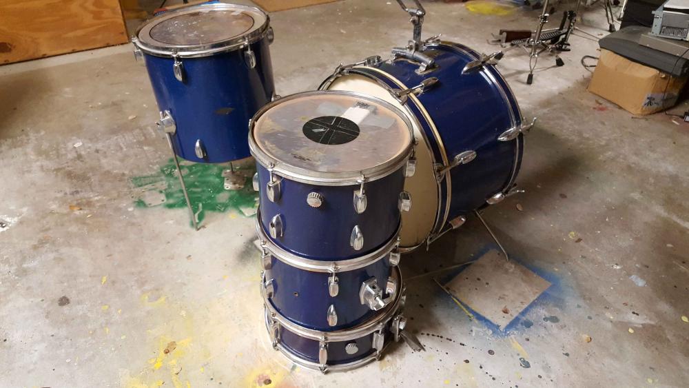 I am looking for help to identify a drum kit, circa late 1960s early 1970s. I've had the kit since the mid-70s. No badges on any pieces. An oblong (sideways) diamond stain on the floor tom may have been a badge. I was always told it was a Slingerland, but the replies on the Vintage USA forum said no, probably from Japan. Any advice appreciated. [Attachment: 104867]